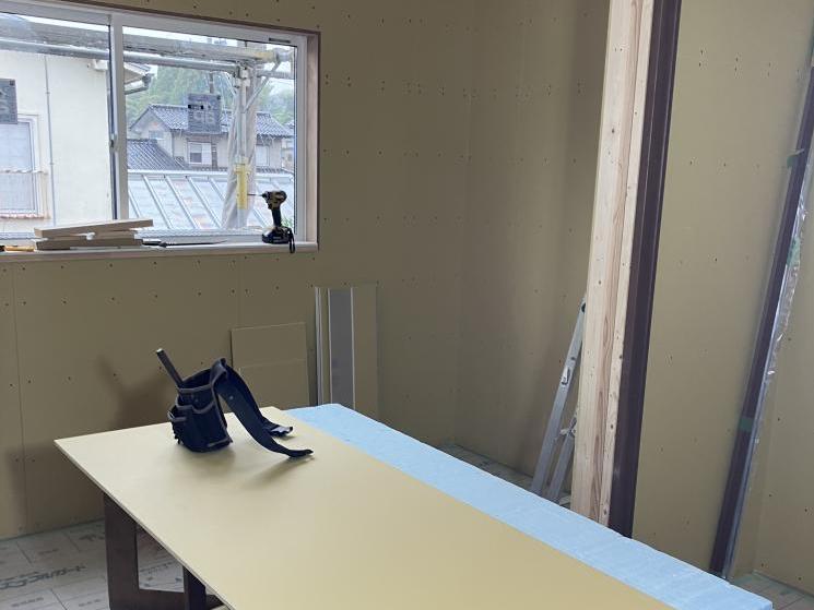 その後、壁の表面に石こうボードを貼っていきます。