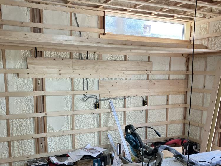 ウレタンフォームを吹き付けた壁部分に、