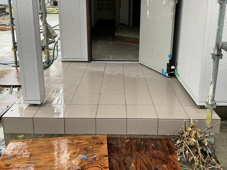玄関ドアとポーチの高さをそろえていきます。