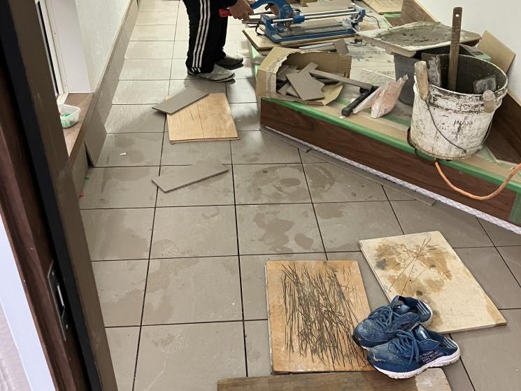 その後、室内と外部の両方にタイルを貼っていきます。