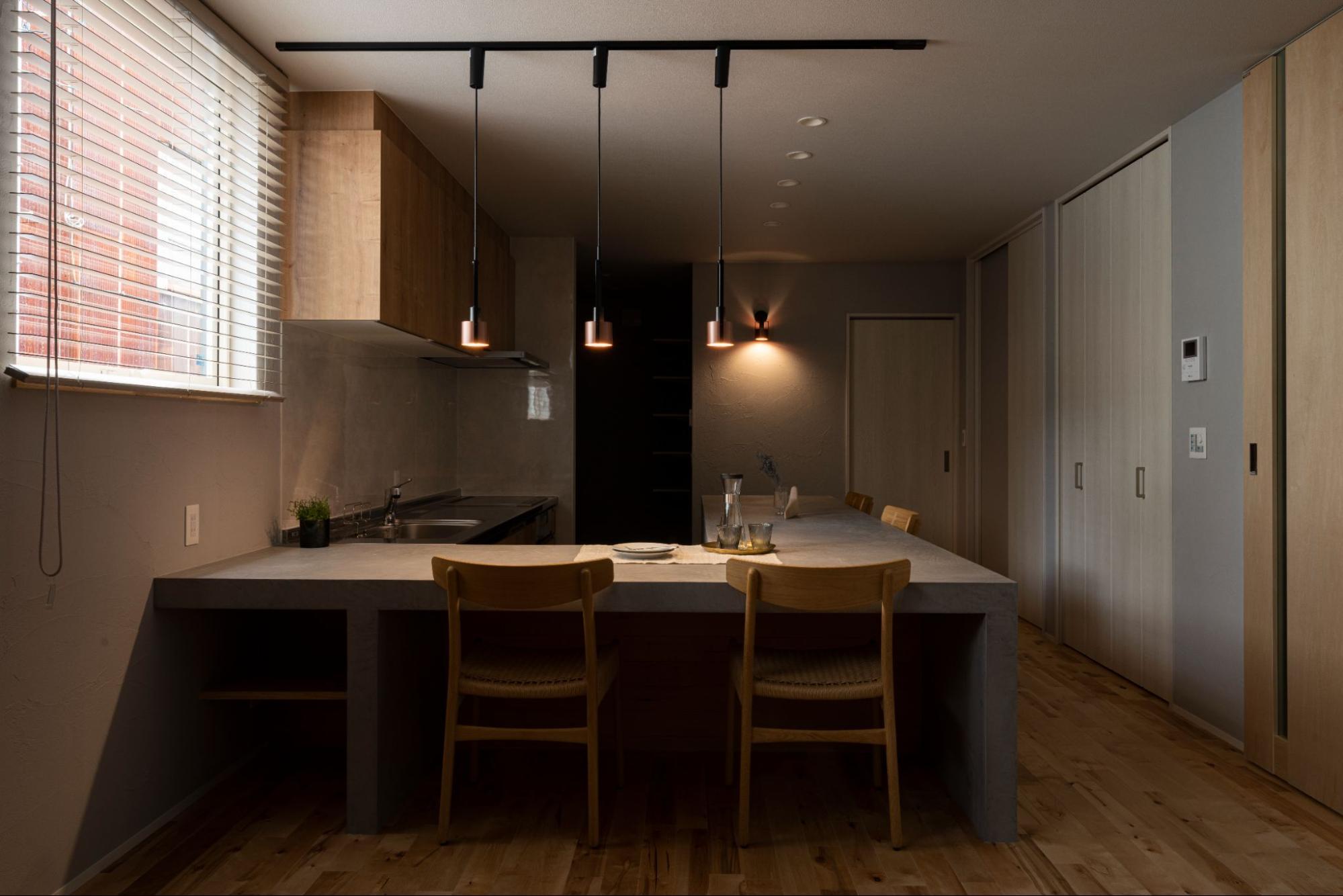 躯体現しは、コンクリートや構造材そのものの素材感を活かせる魅力があります。木やアイアン、ガラスとの相性も良く、カフェ風・インダストリアル系の内装に仕上げやすいのが特徴です。