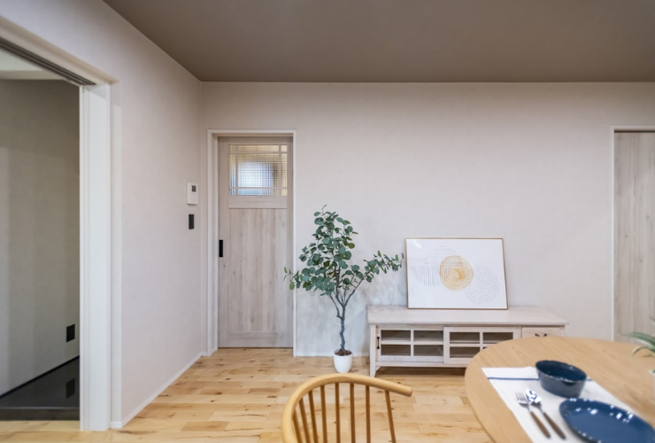また、壁にはベージュ色の漆喰を採用。実は漆喰は色のバリエーションが豊富で、部屋の雰囲気に合った色味を選ぶことができます。今回は落ち着いた色合いを選ぶことで、ナラ材との相性がよく、部屋全体が落ち着きのある空間となりました。