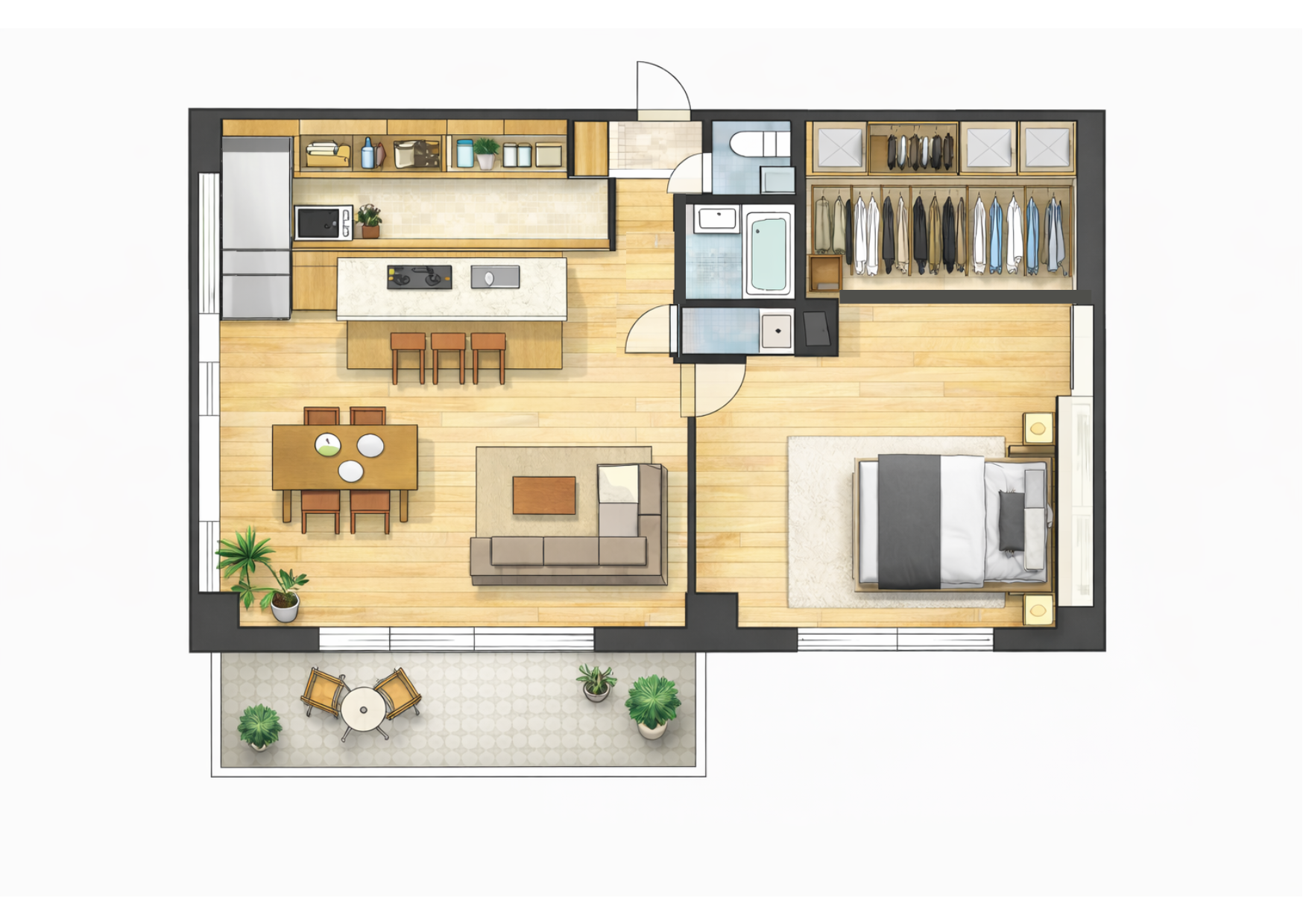 一人暮らしや、空間を自由に使いたい人に特に向いている間取りです。