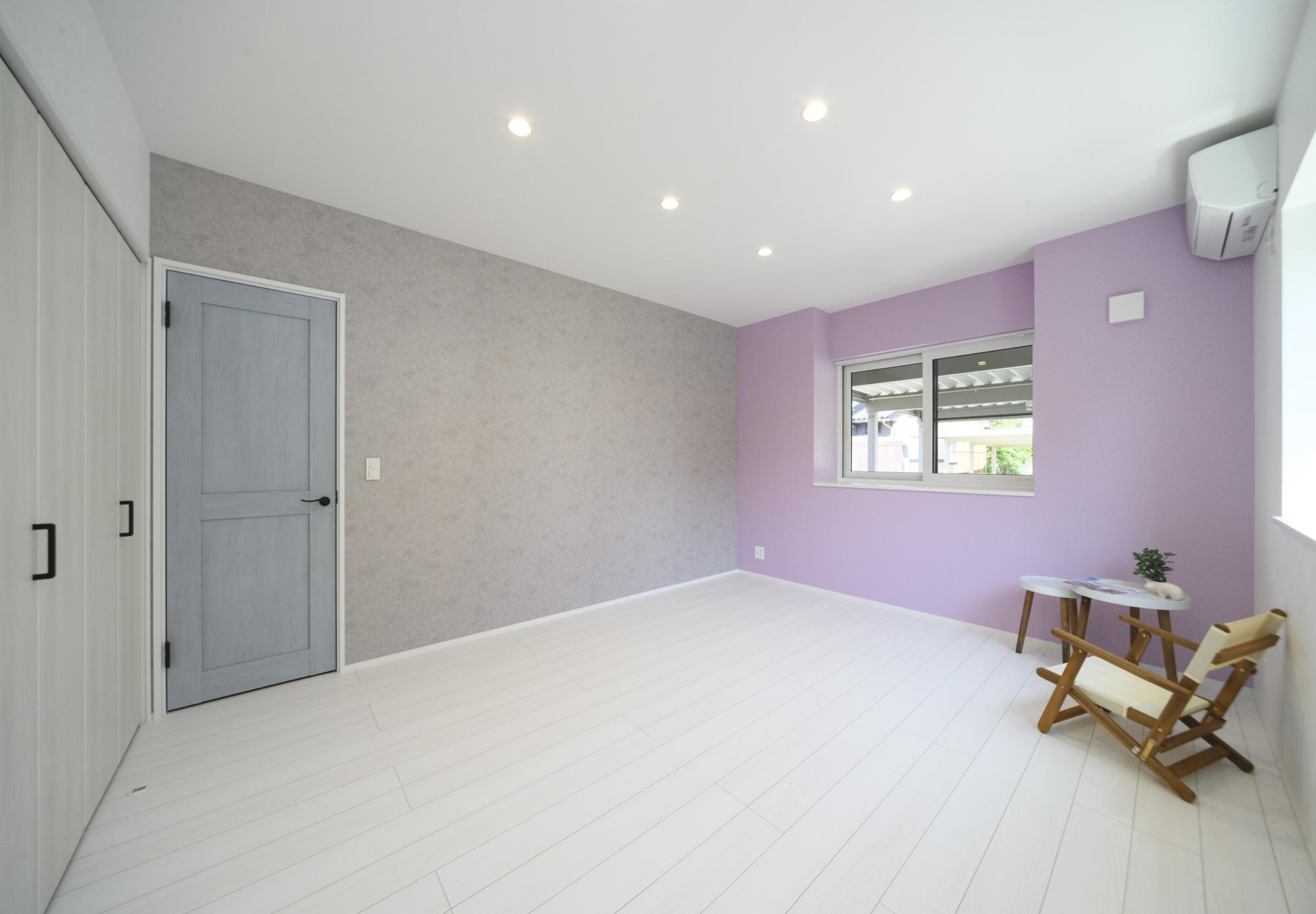 弊社がリノベーションを担当したS様邸では、将来も使えるように白を基調にしつつ、お子さんの要望に合わせて一部の壁紙を紫にしています。