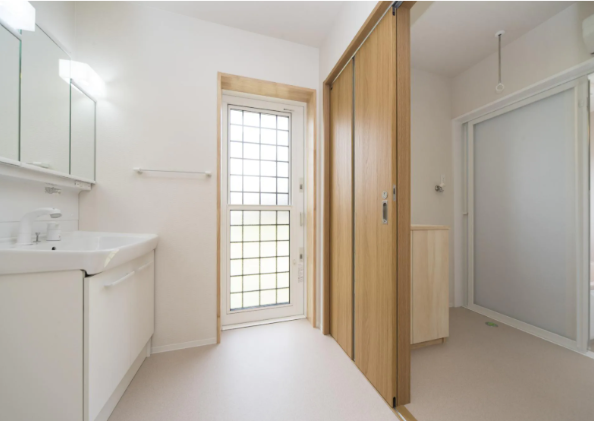 また、廊下やお風呂場への扉とは別に、サンルームやウォークインクローゼットへの動線を確保できます。そうすることで、洗濯後の移動が減るためとても便利です。