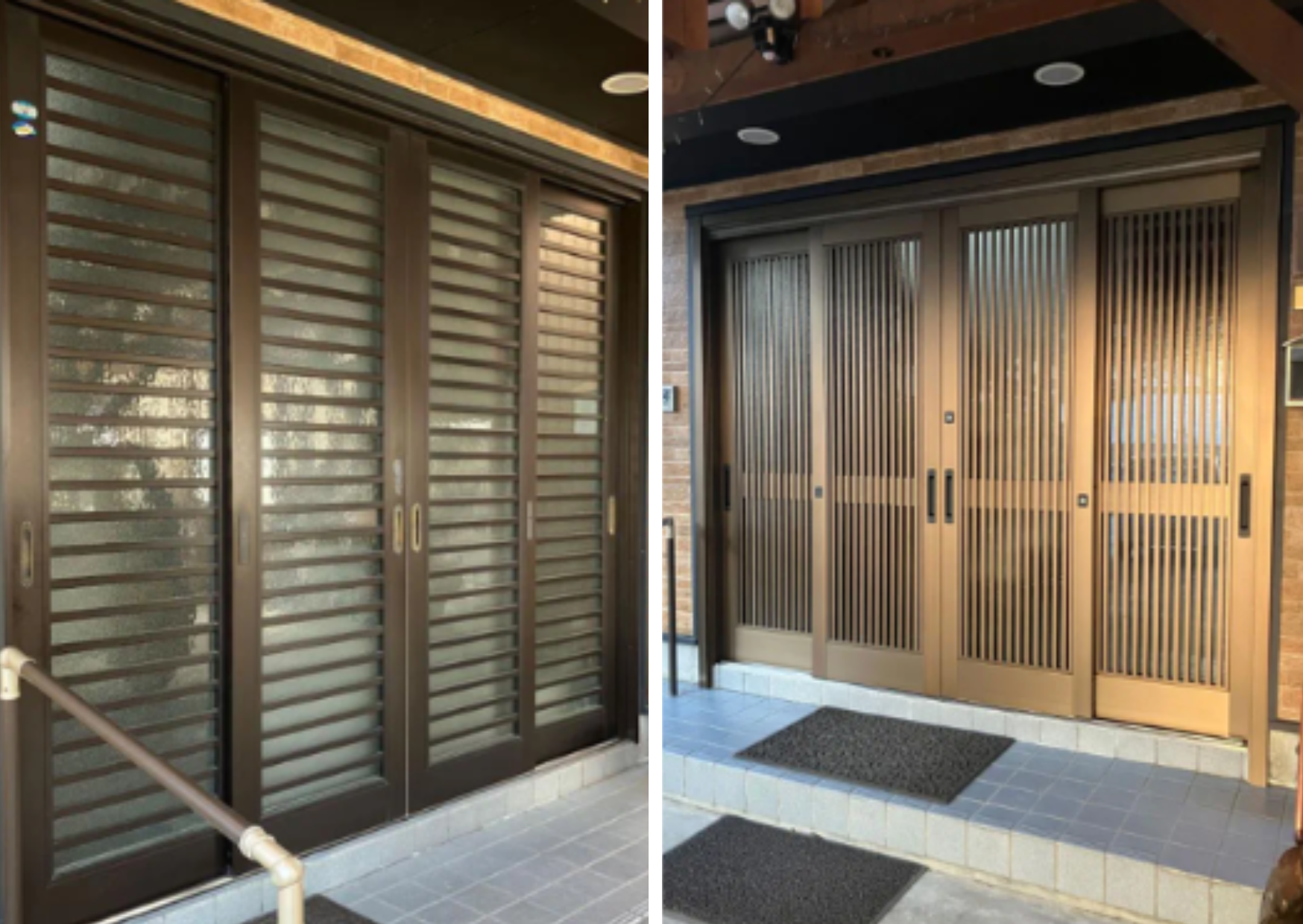 こちらの玄関は、隙間風がひどく室内が冷えやすかったことから、断熱性の高いドアに取り換えました。