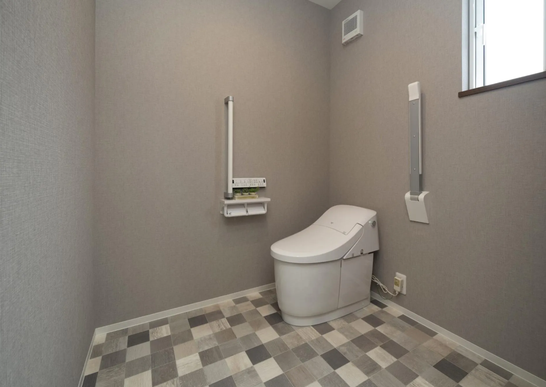 お手洗いも十分な広さを確保しました。便器の横に手すりを設置しています。