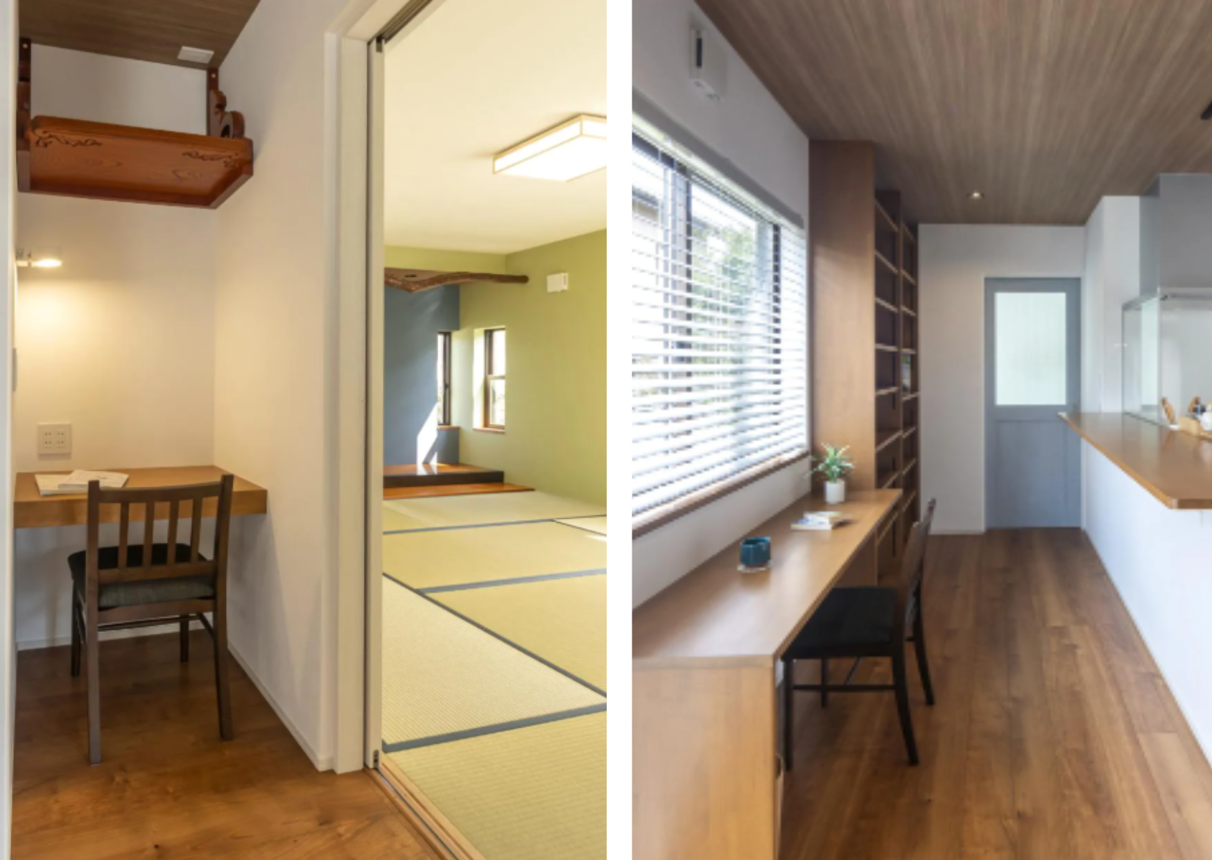 こちらのご家庭では、リモートワークをしている施工主様に合わせて、和室の横に書斎を設置。