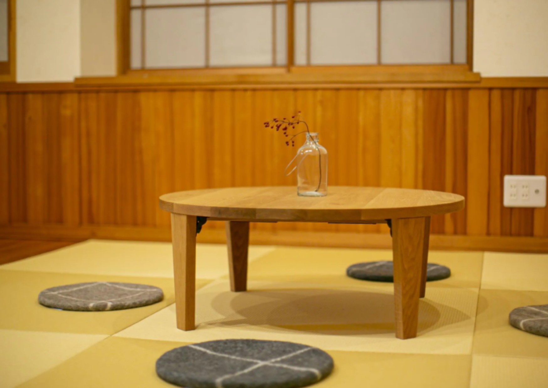 部屋の一区画には、ユニット式の畳タイルを敷いて和室風に。 痛んできても取り換えやすく、手入れが手軽な点がポイントです。