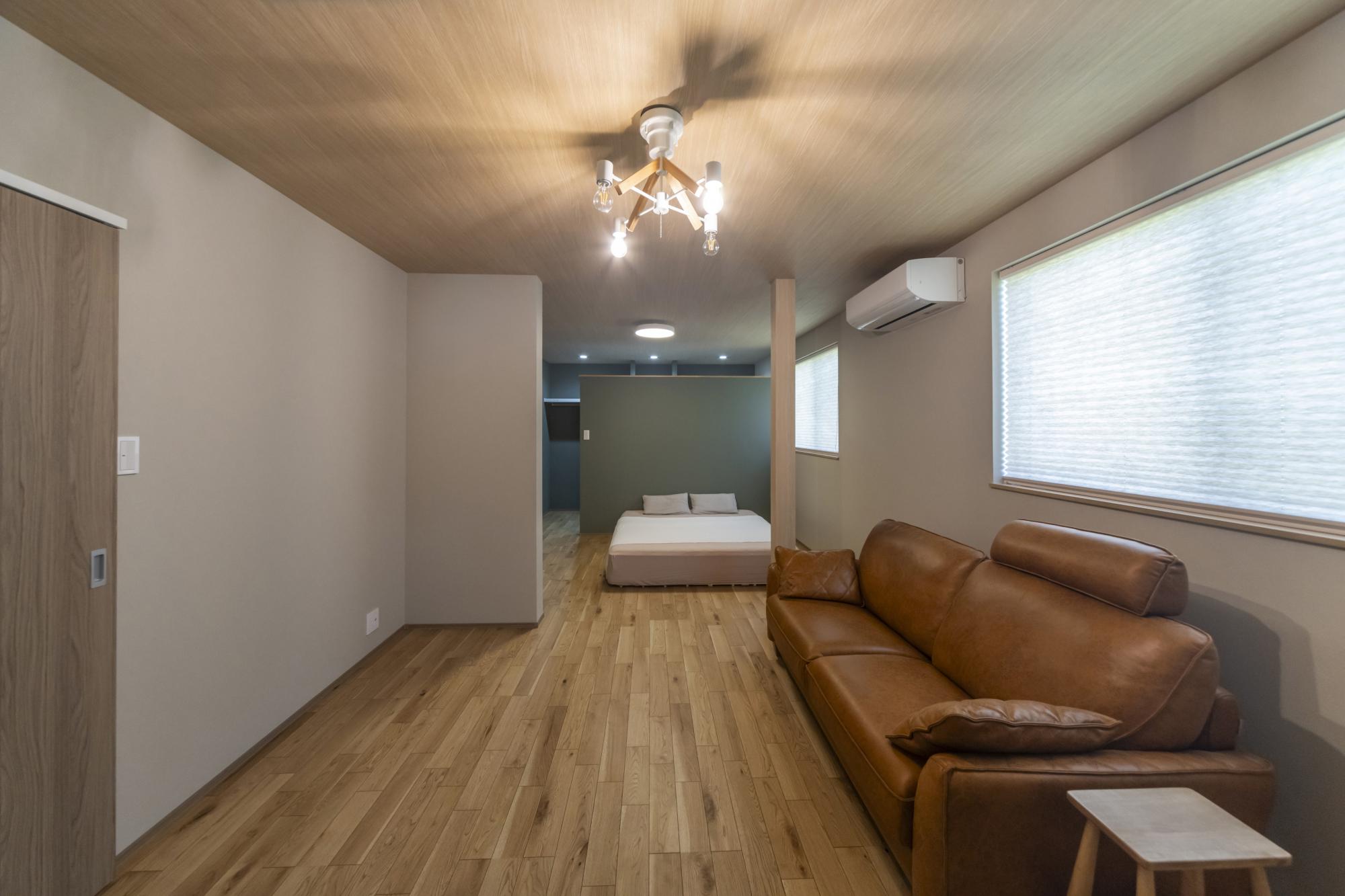 既存の建材の状態がよかったため、使用。水まわりなど、一部の使用のみを変更しました。 暖色系の温かみのあるライトが、和を感じる落ち着いた雰囲気を演出しています。