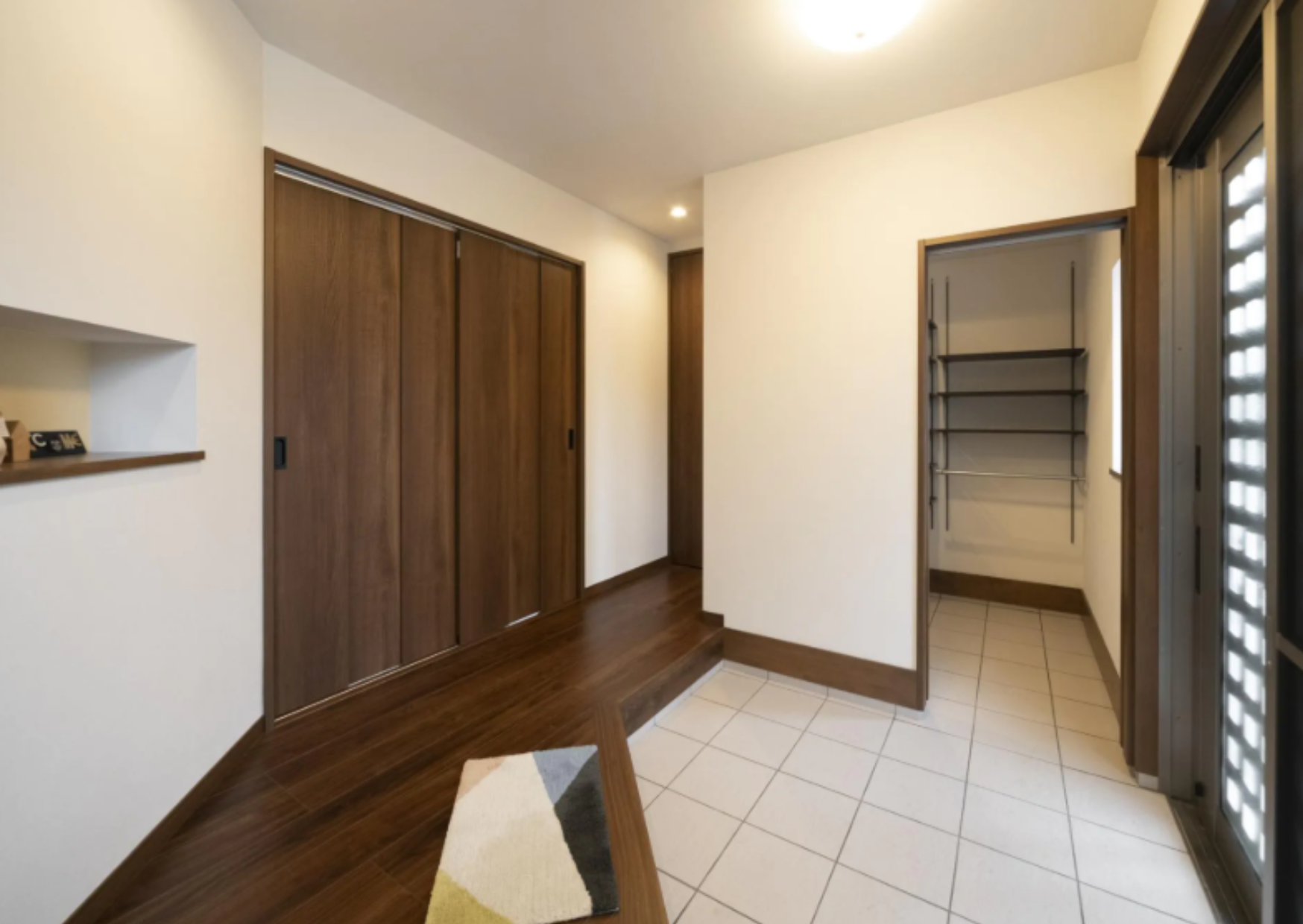 玄関は、土間も廊下もスペースを広くとり、車いすのまま移動できるようにしました。 必要に応じて、スロープをあとから設置することもできます。