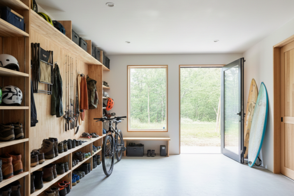 例えば、玄関スペースを広げたり、使われていない収納や和室の一部を土間に変更することで、アウトドア用品用の収納スペースを確保できます。