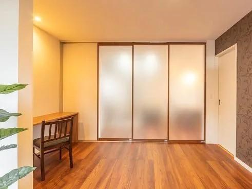 こちらは、壁ではなく可動式パーテーションで部屋を仕切るリノベーションです。