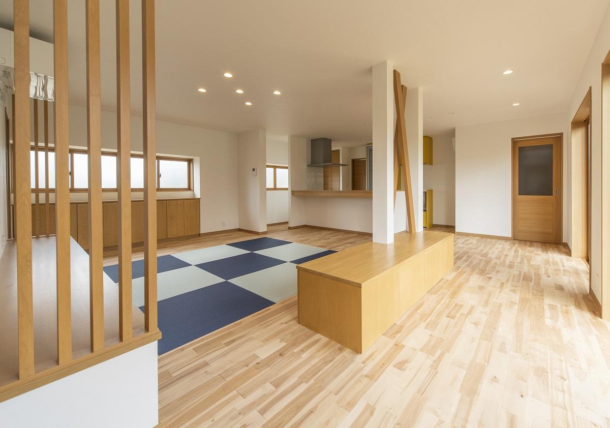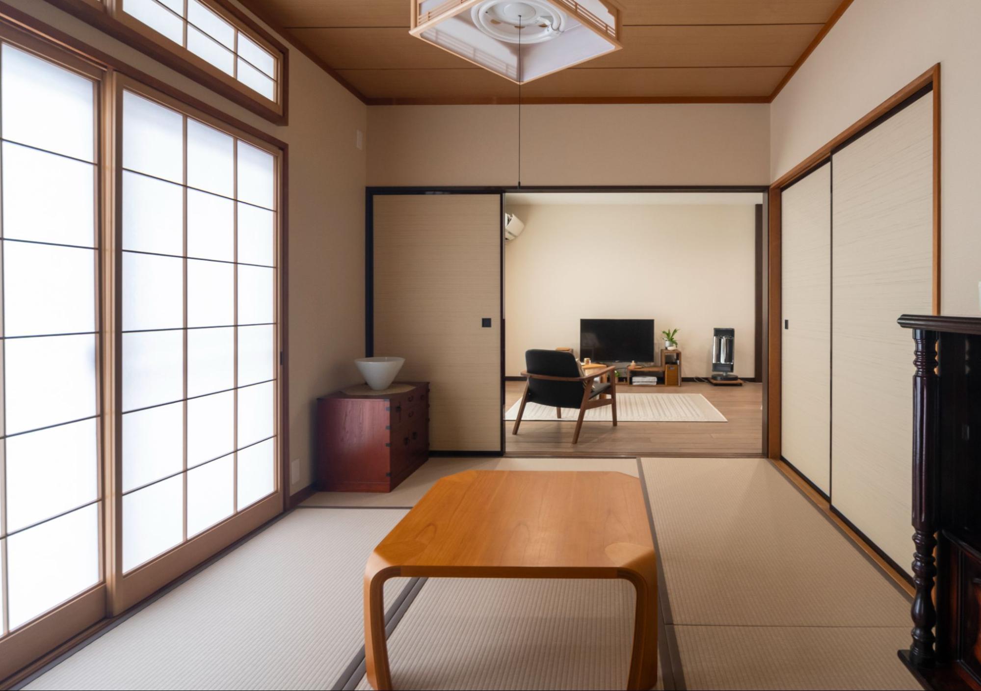 元々5部屋あった和室の間取りを変更し、広いLDKへと変身させています。また残した和室は半畳畳を使用して和洋を感じさせるテイストに。リビングとは引き戸で分けられるので、個室としても、リビングの一部としても活用できるのがポイントです。