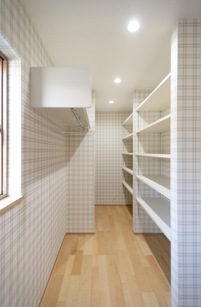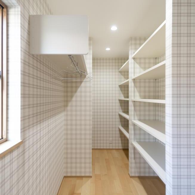 玄関横にパントリーを設けることで、迷子だった物たちに居場所を与えます。