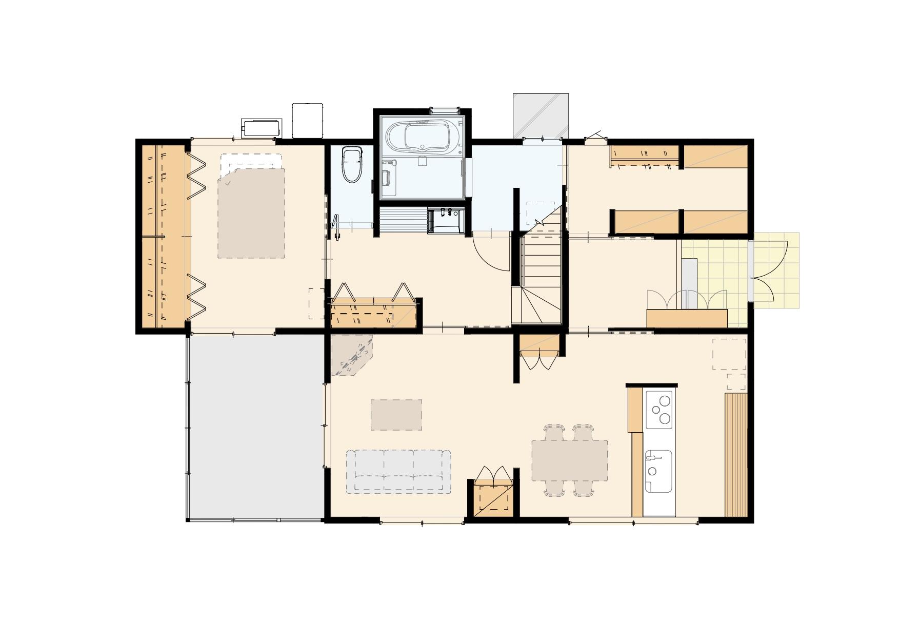 住まいの東面には18帖のLDKを設けました。